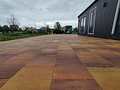 Bruģēšanas laukuma sagatavošana. Izņem / izved melnzemes slāni. Atved un ieber šķembu slāni. Ieber smalko materiālu izlīdzināšanas kārta